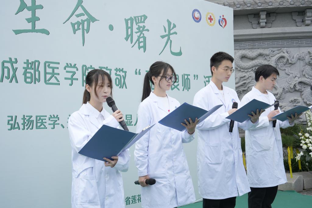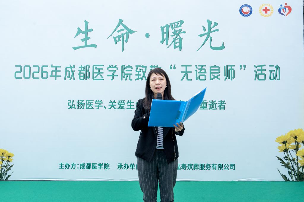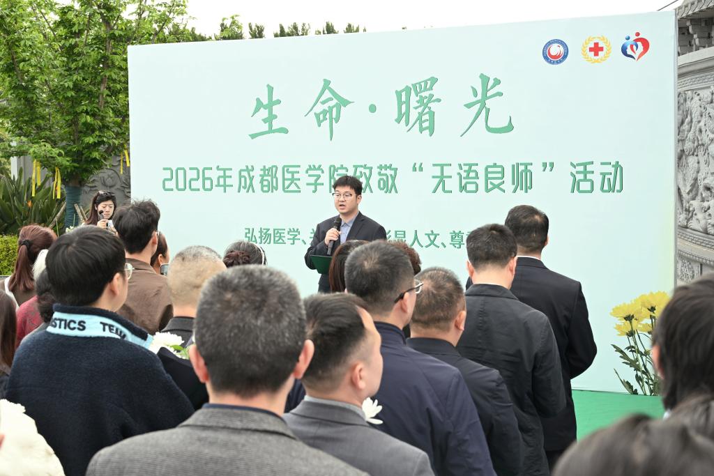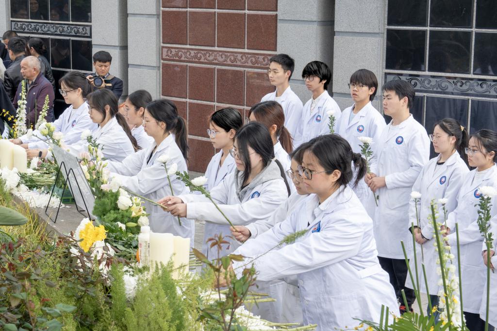 成都医学院副院长王计生表示,学校作为四川省红十字会授权的遗体捐献接收单位,2010 年以来,在省、市、县各级红十字会的鼎力支持下,已接收1000余位捐献者的遗体,为医学教育与科研提供了坚实支撑。学校将继承弘扬“无语良师”的无私大爱,坚守立德树人初心,努力培养更多“政治坚定 技术优良 艰苦奋斗 救死扶伤”的医学人才。学校每年清明前夕,都举行致敬“无语良师”活动,作为传递“无语良师”无私奉献精神、培育医学生“仁爱”之心、奠基医学生美好医德的医学人文教育思政大课。为强化医学生的人文素质教育,学校建立了“馨香园-感念堂-人体生命馆”的医学人文教育基地,2015年,被教育部批准为“高等学校医学人文素质教育基地”。在日常教学中,学校将遗体捐献志愿者的大爱和无私精神融入课堂教学,每学期第一次解剖课,老师都会组织学生向“无语老师”默哀致敬,宣讲“无语老师”生前事迹、生前遗言等,引导学生体悟感恩、奉献和责任;解剖教学中,教导学生“把遗体当作病人、把解剖当作手术”,培养学生敬畏生命,用心锤炼医学技能,施行仁术,造福人民。